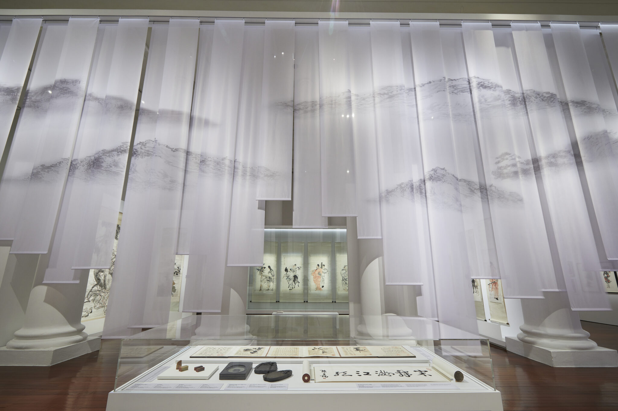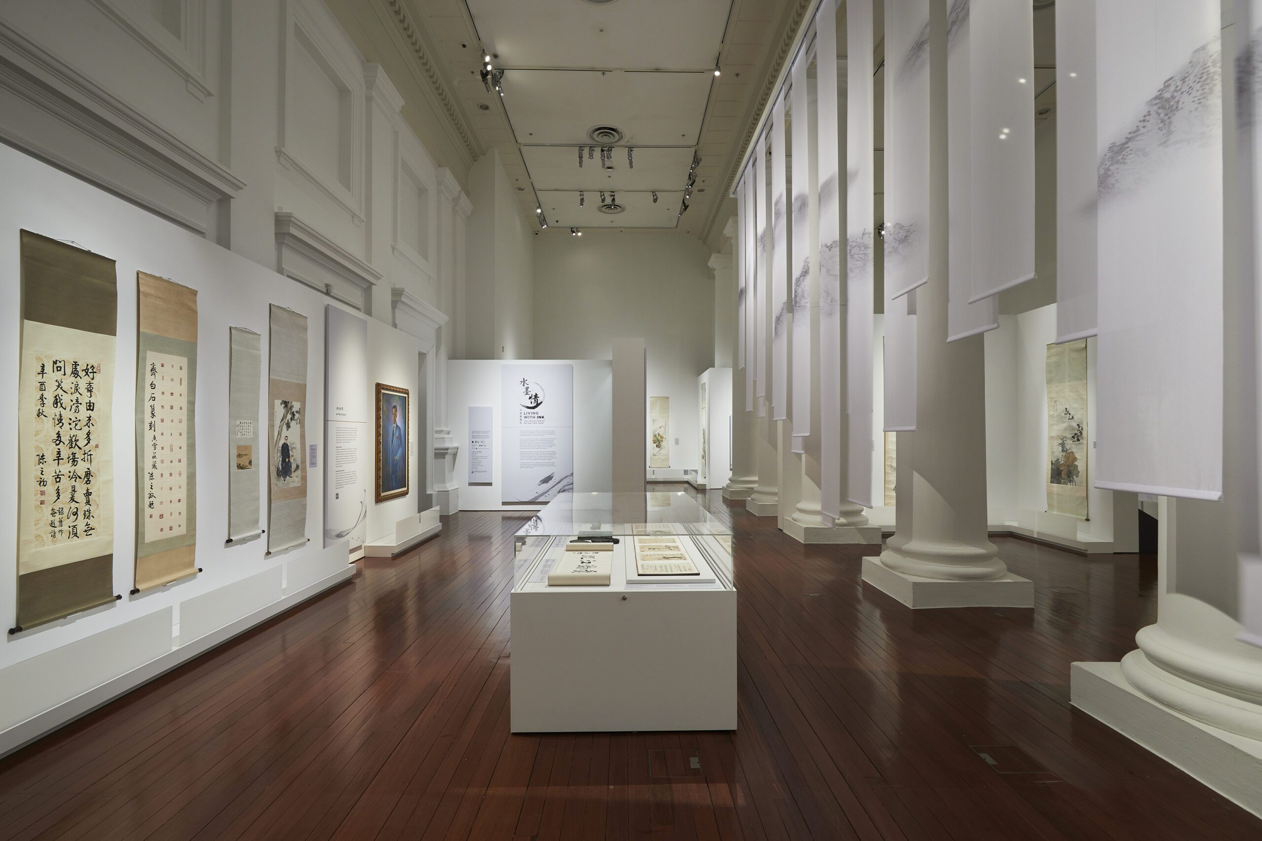 Within the monumental space of Asia Civilisations Museum sits a collection of Chinese paintings by Singapore’s renowned art collector Dr Tan Tsze Chor. Selected and curated for its Chinese ink medium, we made prominent the very qualities that exudes from the Chinese scrolls by diffusing its characteristic into the museum’s environment.