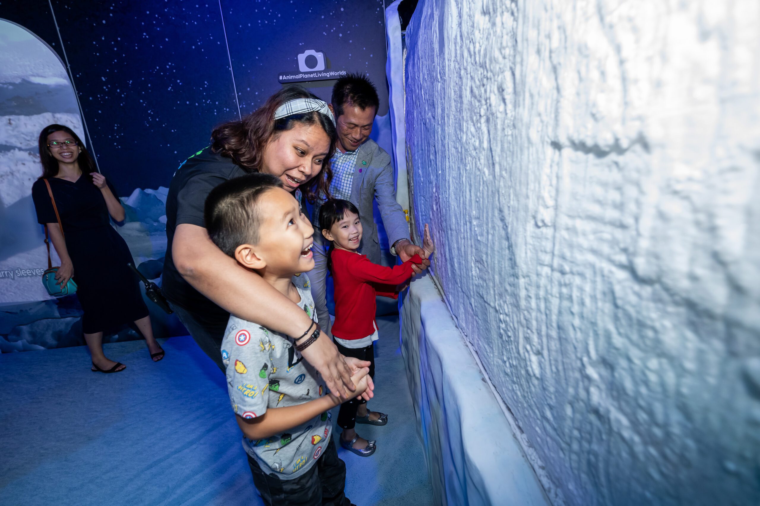 The story follows majestic wildlife creatures through their natural habitats, fostering an inter-relational understanding of the ecosystem we share. To immerse the audience in truly compelling environments, bespoke multimedia and specific hardware equipment were brought in – of which includes a 270𝆩 projection dome, a stimulated ice wall of 2 metres width and 1.5 metre height, and interactive floors for games. Charting these realms of nature, audiences can delve into the Animal Planet experience and tap into their imagination to dive around in a submarine and make friends with the creatures of the North and South Pole.